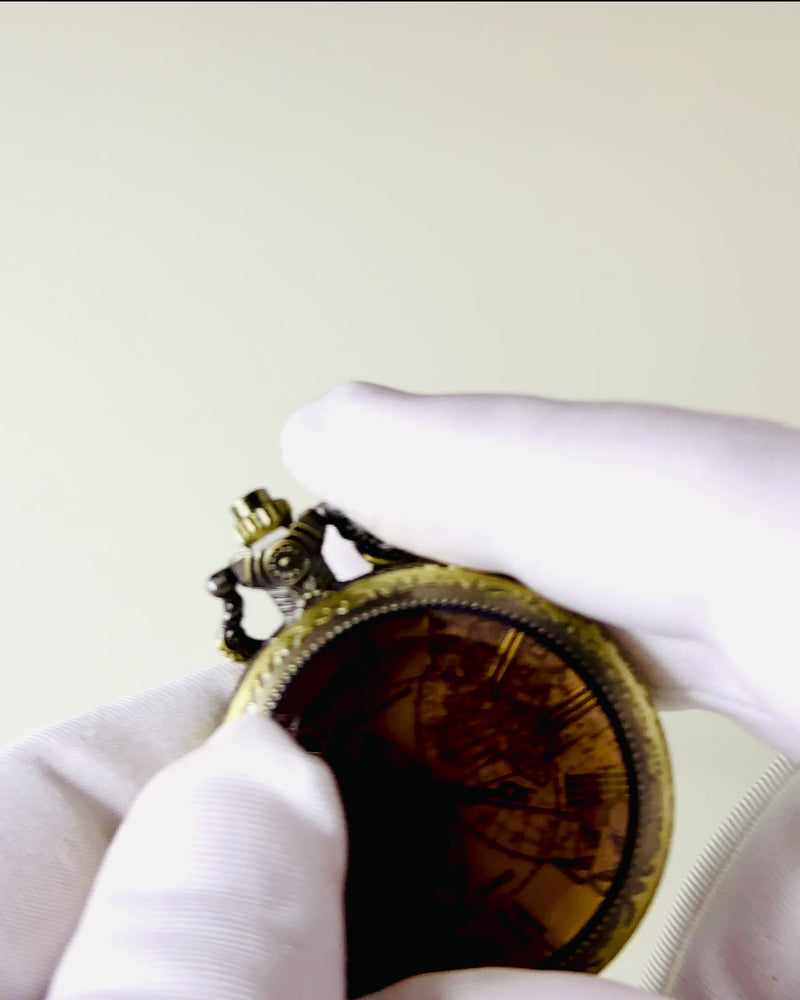 Klassische Quarztaschenuhr mit Weltkarte – Vintage-Stil Anhänger mit Kette für Sie und Ihn, Gravur