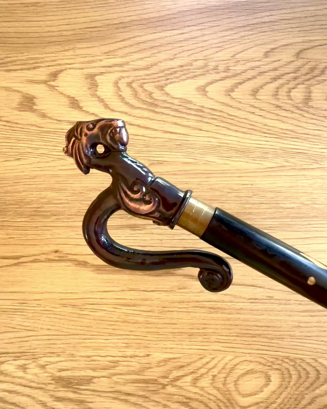 Black Panther Cane Cover with Engraving Option - Handcrafted from Natural Leather